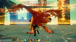 ちなみに稀に使用してくる咆哮は、目の前に居ると一定時間スタンさせられ、グリフォンには赤いエフェクトが発生し、その後の行動スピードが1.5~2倍程度に速くなるので注意です。